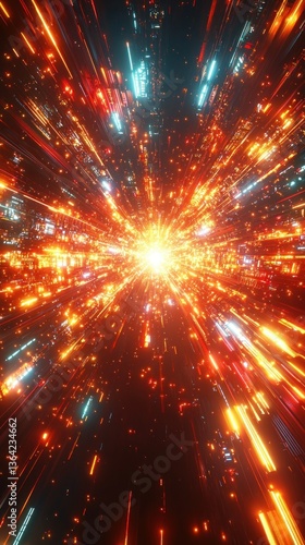 Blazing, vibrant streaks of light converge to form bright, centered energy