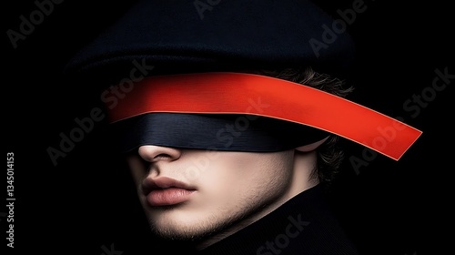 Blindfolded Man for Red Stripe, Dark Background.