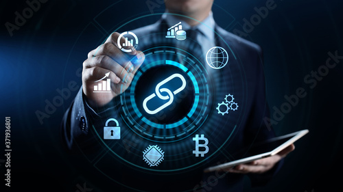 Blockchain Cryptocurrency FInancial technology concept on screen.