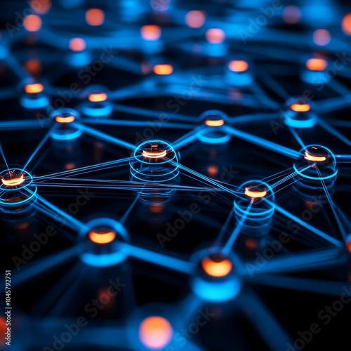 Blockchain disruption, decentralized AI-driven data, floating holographic nodes