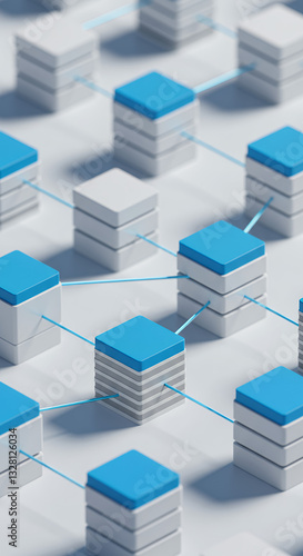 Blockchain Network: Modern Data Blocks Connected, Blue & White, Innovation, Technology, System, Future, Data, Storage, Connection