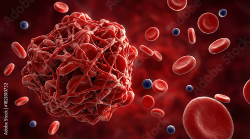 Blood clot illustration medical concept of thrombosis embolus or coagulation isolated on red backgro
