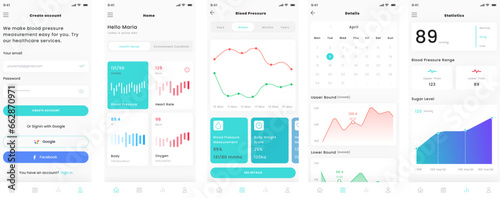 Blood Pressure Measurement and Healthcare Check and Test Mobile App UI Kit Template