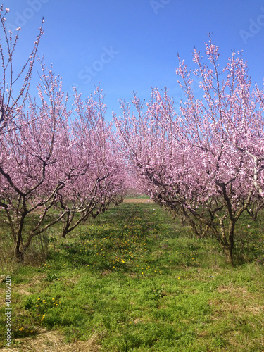 blooming peach trees in spring
