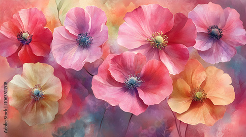 Blooming Poppies, poppy, flowers, blossom, floral, pink