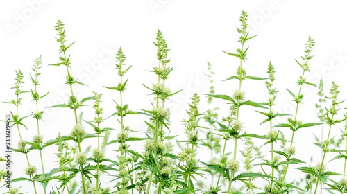 Blooming ragweed in the warm season serves as an allergen for allergy sufferers on a white background