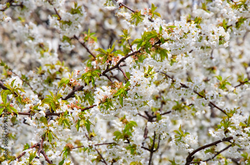 Blossom tree over nature tree - Spring white flowers background