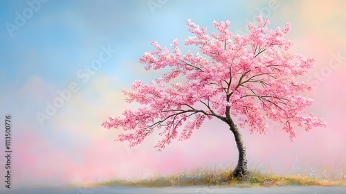 Blossoming Cherry Tree in Springtime Nature Landscape Vibrant Colors Peaceful Environment High Resolution Viewpoint