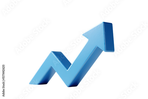Blue 3D arrow pointing upwards, growth concept