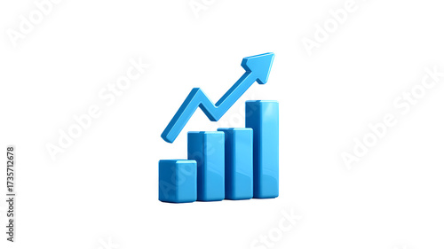 Blue 3D bar chart icon with upward arrow symbolizing business growth and success 3d icon in cartoon plastic style isolated on a transparent background
