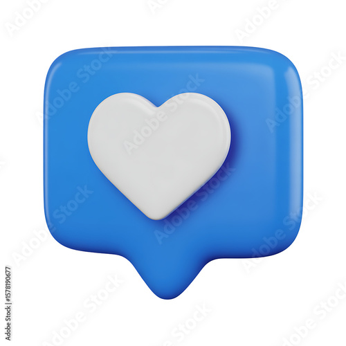 Blue 3D Like Notification Icon with White Heart on Transparent Background