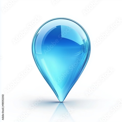 Blue 3D location glass icon, GPS pointer or pin sign with reflection isolated on white background. 3D vector illustration.