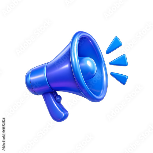 Blue 3D Megaphone Symbol for Announcement and Advertisement Isolated on Transparent Background