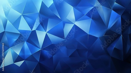 Blue abstract background featuring geometric triangular shapes in various shades of blue, creating a modern and dynamic look.