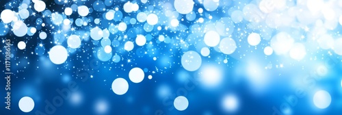 Blue Abstract Background with Blowing Glittering Lights and Bokeh. Festive Christmas Design