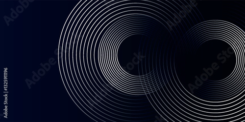 Blue abstract background with glowing circles. Swirl circular lines pattern. Geometric spiral. Twirl element. Modern graphic design.