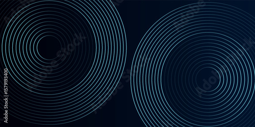 Blue abstract background with glowing circles. Swirl circular lines pattern. Geometric spiral. Twirl element. Modern graphic design. Futuristic technology concept.