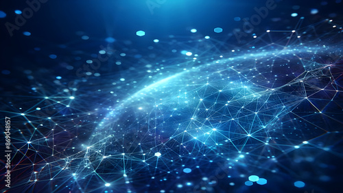 Blue abstract background with network grid and particles