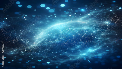 Blue abstract background with network grid and particles
