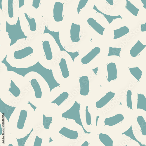 Blue abstract print, seamless pattern, background with different white shapes. Vector illustration