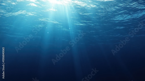 Blue abstract underwater scene, with light ripples and bubbles drifting upwards, invoking a peaceful aquatic ambiance.