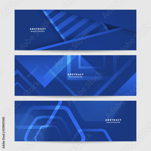 Blue abstract vector long banner. Minimal background with arrows and copy space for text. Social media cover and web banner template