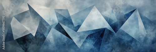 Blue and black Tones Geometric Triangles Grainy Texture. background with Subtle Gradients and Muted Colors