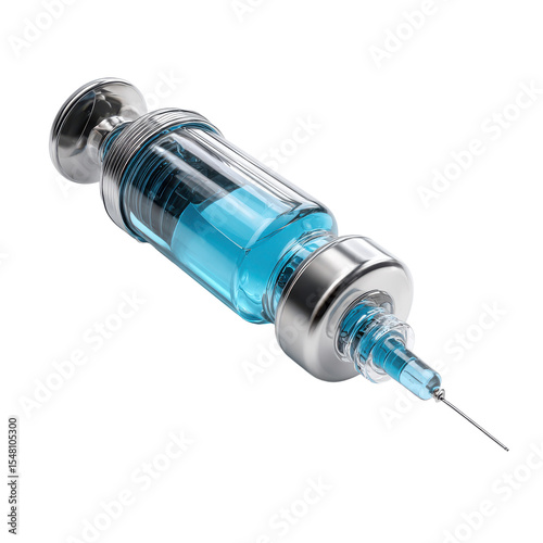 Blue and clear syringe with a blue liquid inside. 3D png transparent background