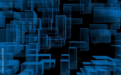 Blue and dark abstract digital and technology background. The pattern with repeating rectangles. 3D illustration