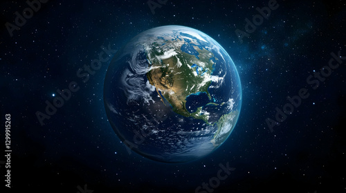 Blue And Green Earth Planet Floating In Space With Bright Stars In The Background