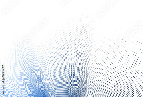 Blue and grey dots in 3D perspective vector abstract background, dotted pattern cool design, wave stream of science technology or business blank template for ads.