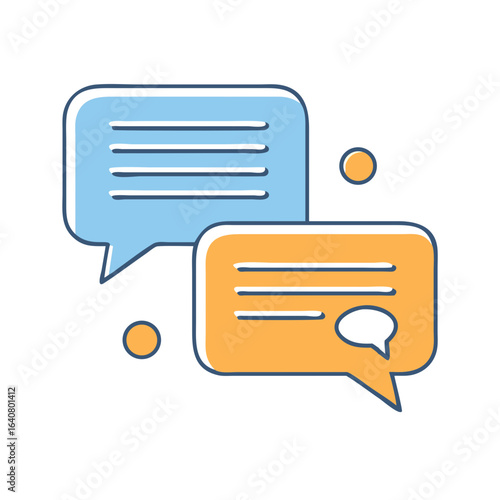Blue and Orange Speech Bubbles Conversation Icon with Lines and Dots