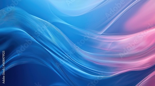 Blue and pink abstract wave patterns on a gradient background.