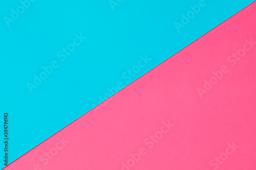 Blue and pink sheets of cardboard with a diagonal seam line for gender design. Copy space