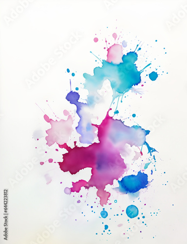 Blue and pink watercolor on a white background. The color splashes on the paper.