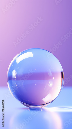 Blue and purple bubble ball on translucent surface in abstract minimalist form, light white and light purple, soft and dreamy depiction