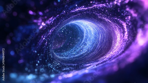 Blue and violet fractal tunnel. Big data, abstract glowing background