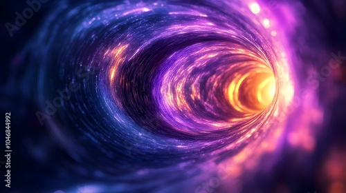 Blue and violet fractal tunnel. Big data, abstract glowing background