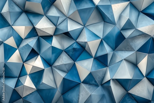 Blue and white abstract design with triangles. The blue and white colors create a sense of calmness and serenity. The design is made up of many small triangles, which give it a sense of depth