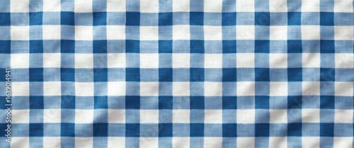 Blue and white checkered fabric texture with a gingham pattern and subtle folds creating a soft and casual textile surface