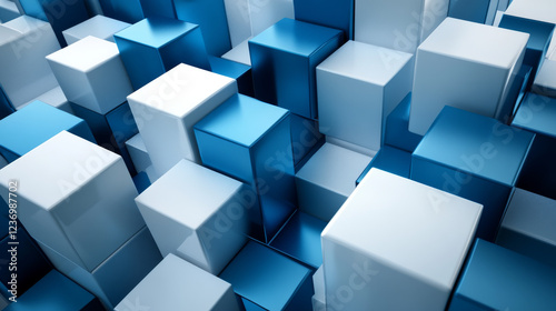 blue and white metal cubes abstract geometric shape 3d render illustration
