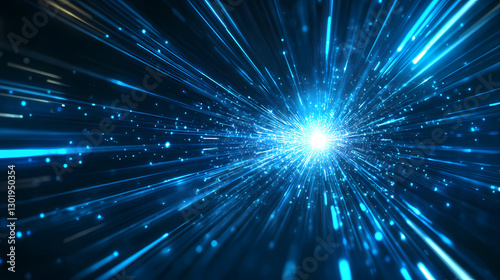 Blue and white starburst image with particles