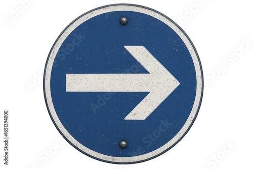 Blue and White Weathered Right Turn Only Sign on Transparent Background
