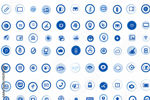 Blue app icons, software interface, digital design, website background