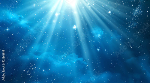 Blue background with starry sky and ray