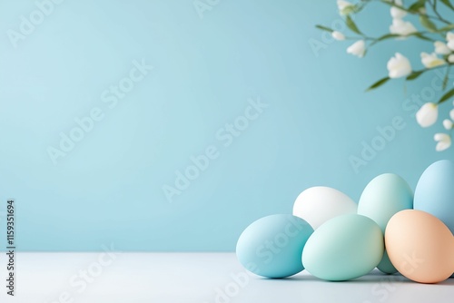 Blue background with a bunch of eggs on it