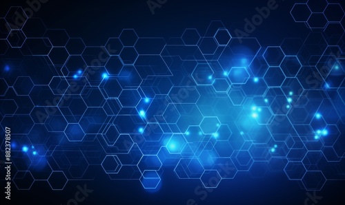 Blue background with a hexagon outline vector illustration. Digital technology and science concept, blue color, flat design, simple geometric shapes, abstract style, without any text or letters