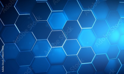 Blue background with a hexagon outline vector illustration. Digital technology and science concept, blue color, flat design, simple geometric shapes, abstract style, without any text or letters