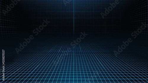 Blue background with grid lines for design, banner template. White space in the center of the page for text. Simple abstract wallpaper with copy space.