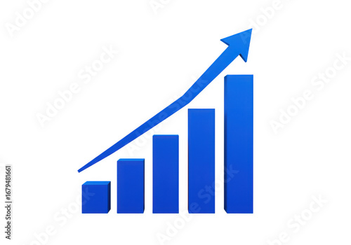 Blue bar graph with upward arrow symbolizing growth and success transparent background